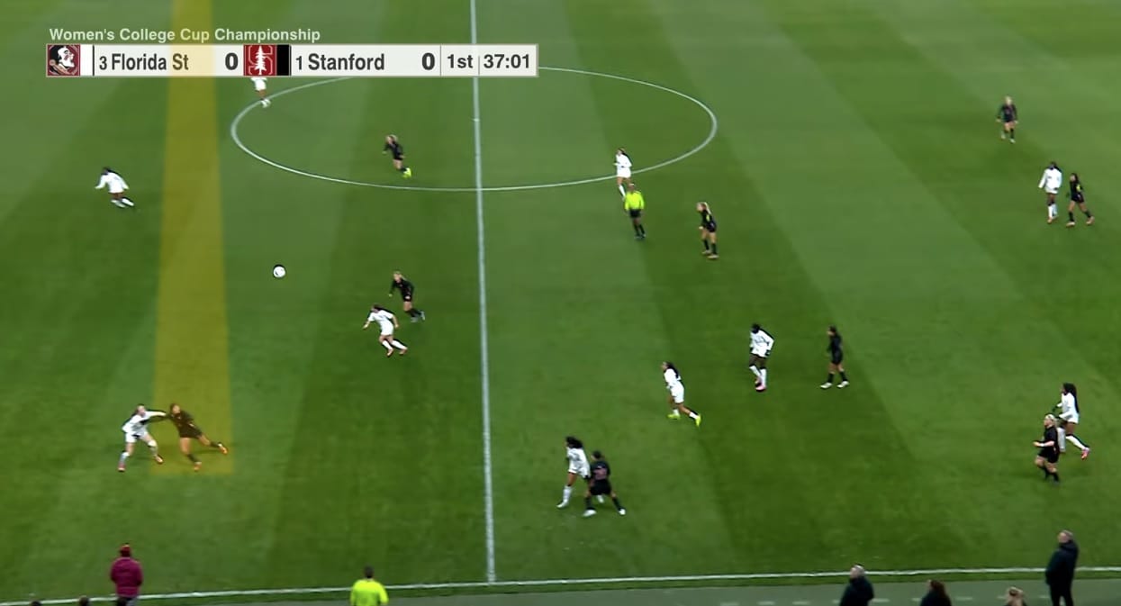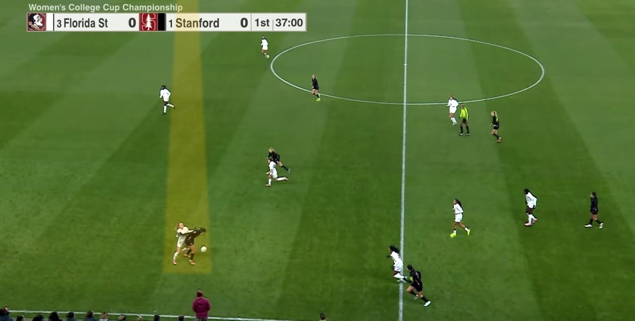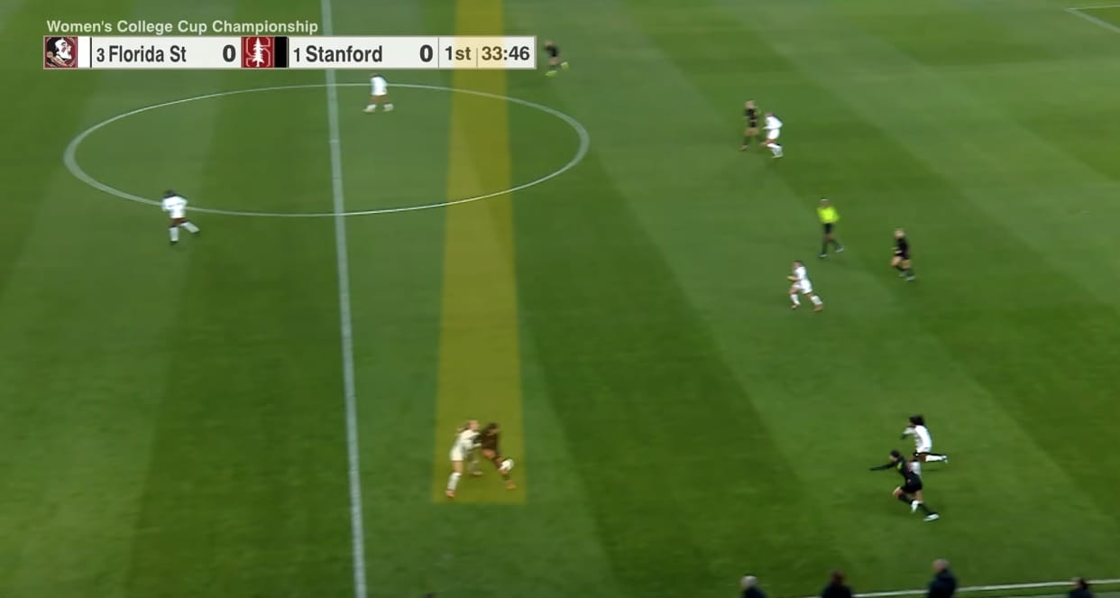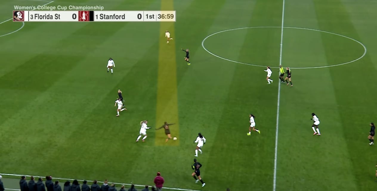 Aikey played up front as a lone striker for Stanford in this game. She didn't run behind or hit the channels, but occasionally drifted wide or came short, acting as a target for teammates to play to and run off as they got upfield.