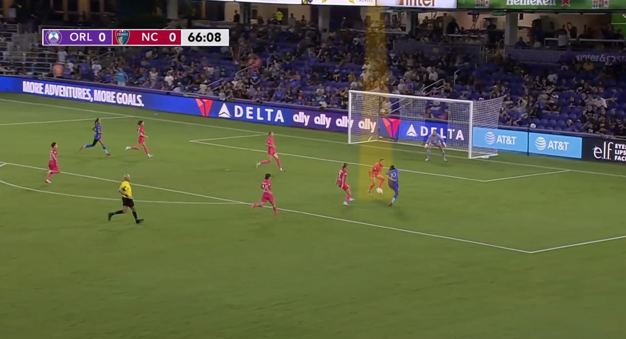 Watt often played on the right flank for Orlando, but did get plenty of game time as a striker, where her intelligence and work ethic leading the press always stood out to me. In the following pictures I’ll show why.